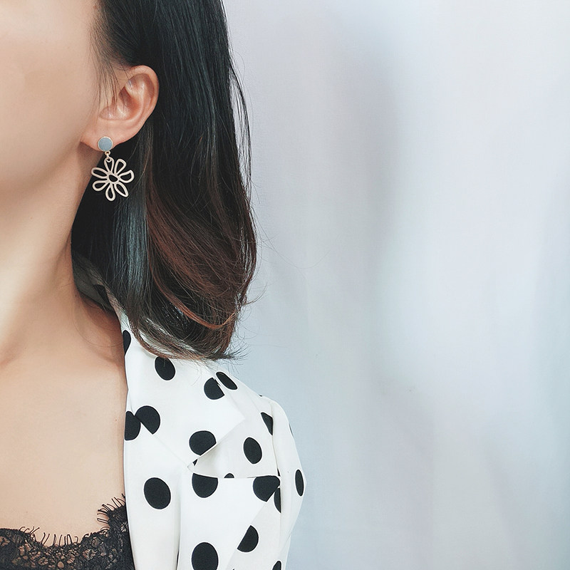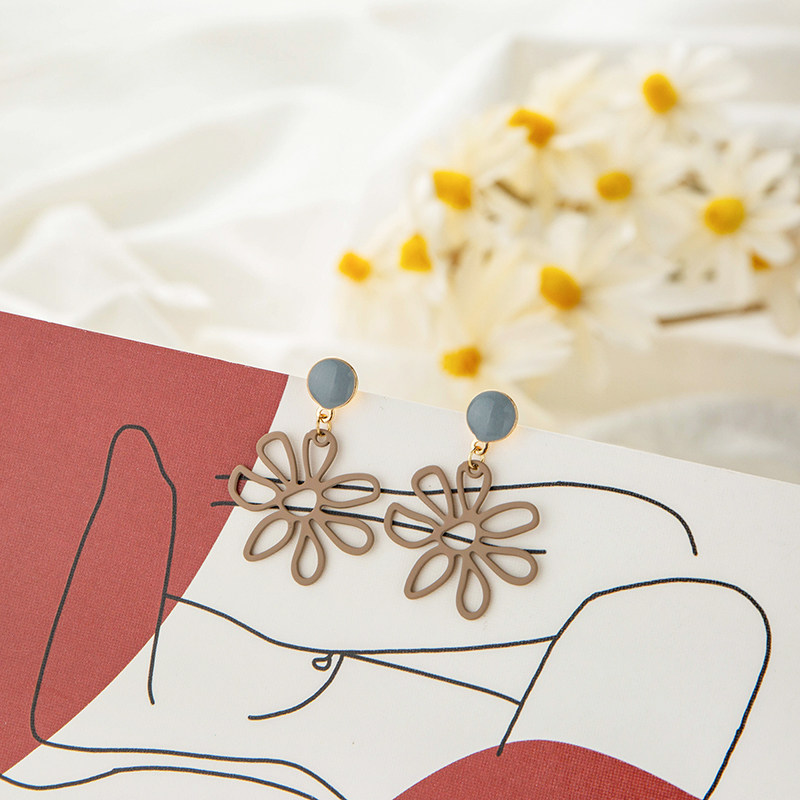 Super fairy fresh candy color Hyuna wind flower earrings cute Korean contrast color no ear pierced ear clip ear needle female earrings