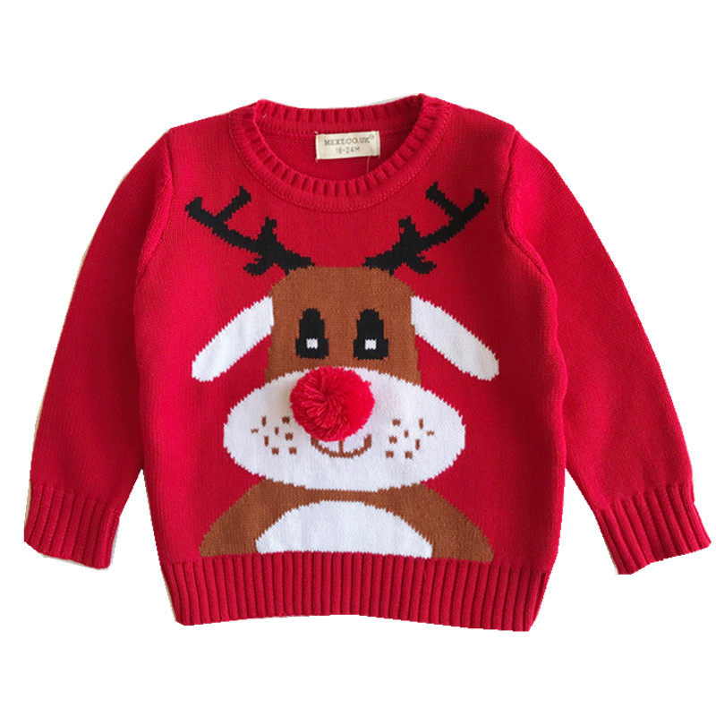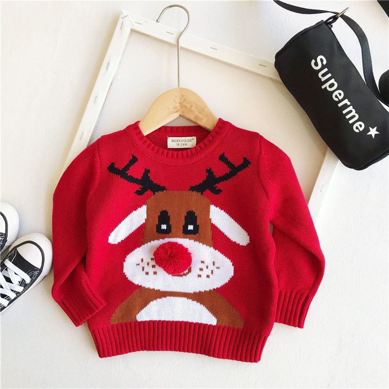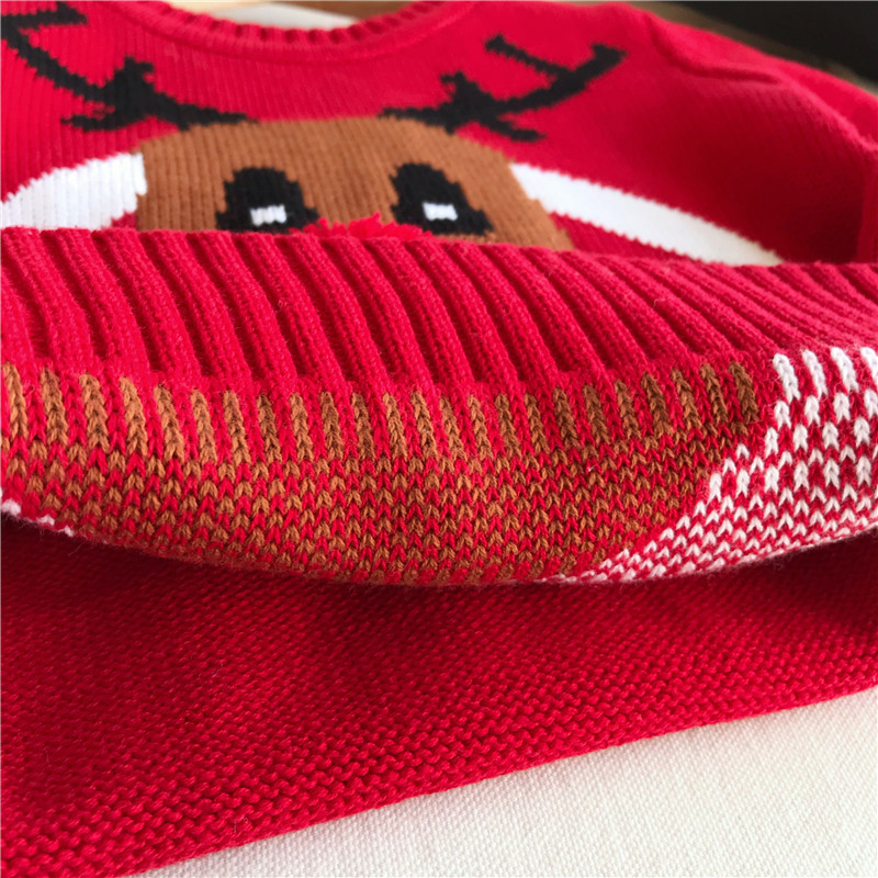 Autumn and winter children's pure cotton thread red sweater baby Christmas deer sweater boys and girls New Year's sweater tide