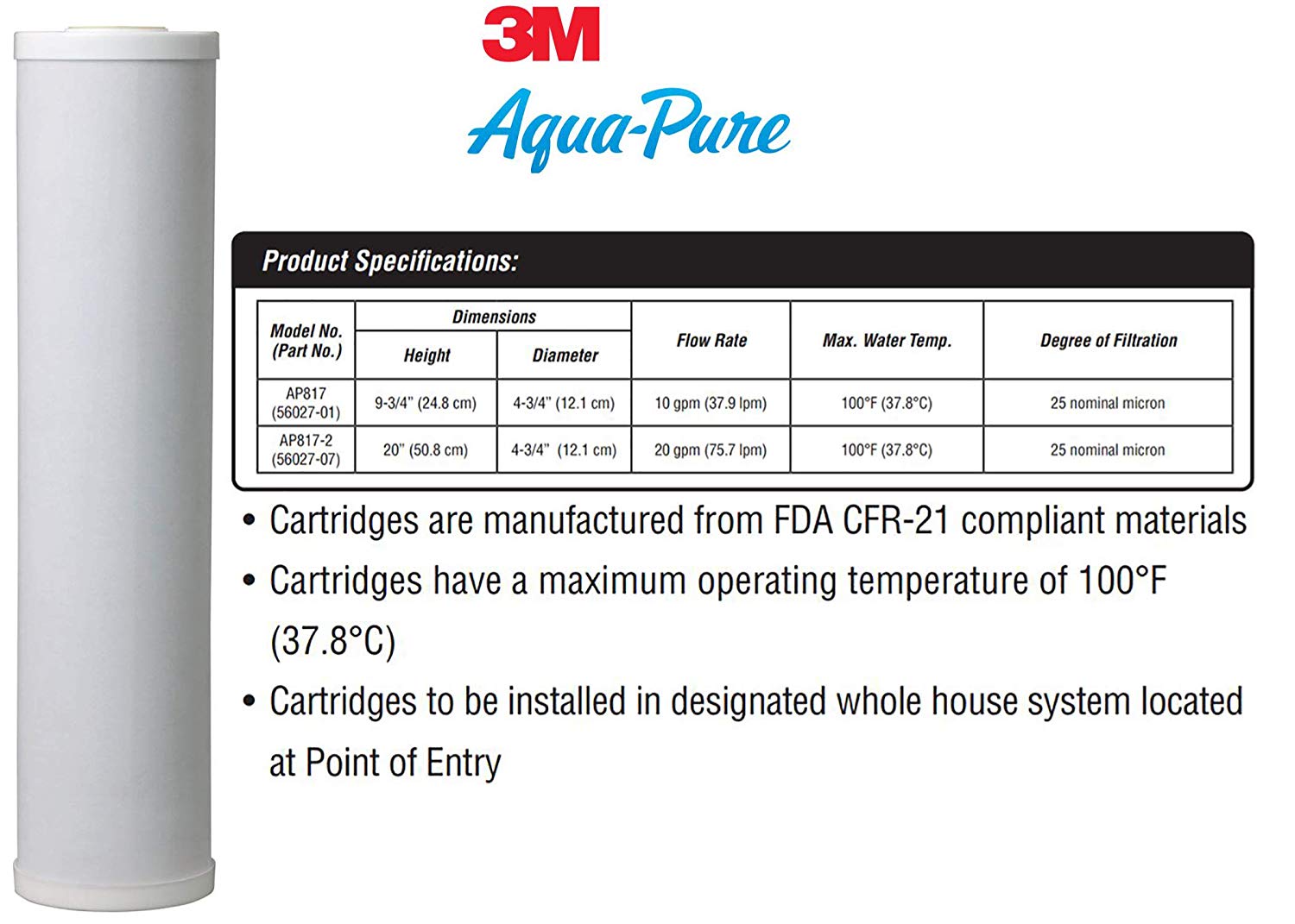 Overseas USA 3M Aqua-Pure AP817-2 Water purifier replacement filter element 25 microsn