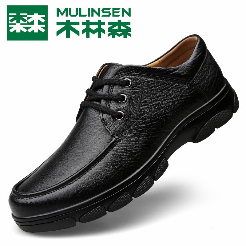 Mulinsen men's shoes winter two cotton shoes business casual leather soft-soled leather shoes men's plus velvet warm middle-aged dad shoes