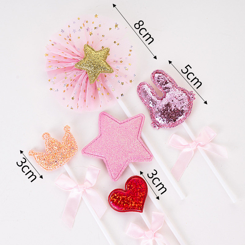 Fresh pink Korean style new cake decoration plug-in Love dessert table crown bunny decoration plug-in