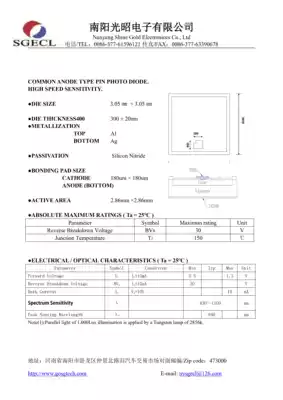 Linear Silicon Photocell Chip 3*3 Wafer Silicon Photodiode Die Silicon Dielectric Die Silicon Chip SGPIN120