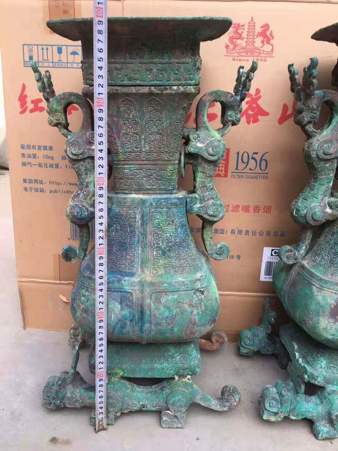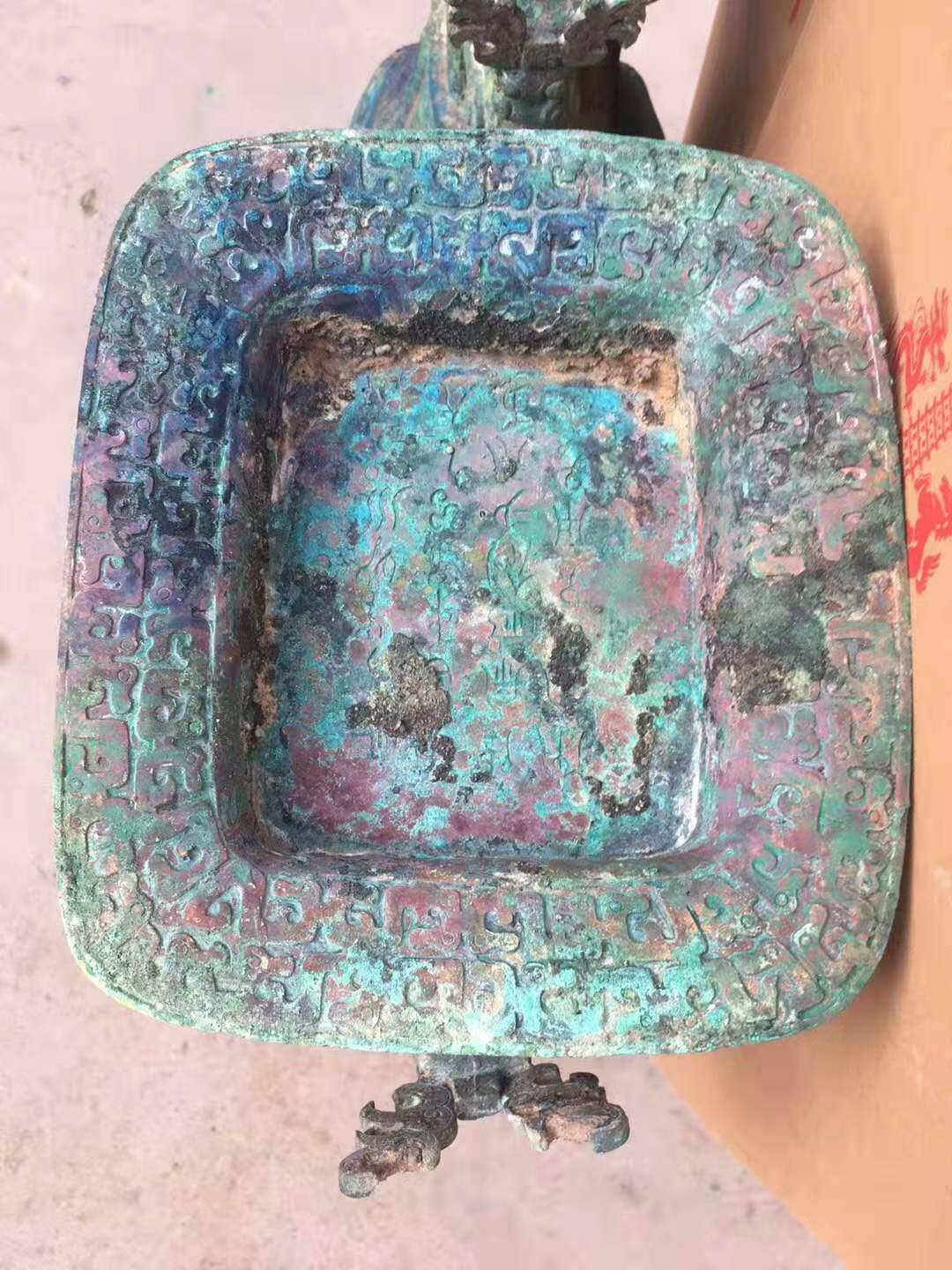 Imitation Antique Bronze Ware Spring Autumn dragon tattooing square jug Stifling Sound Carbonated to Heavy Peacock Blue Rust Pendulum Pieces Antique-Taobao