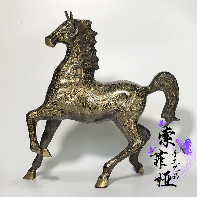 Pakistan Bronze Sculpture 20 Inch Seven Color Engraving Horse Animal Hand Carved Art Bronze Pendulum