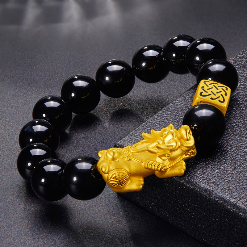 3d Hard Gold Gold Pixiu Hand Foot Gold 999 Transfer Beads Pichu Lucky Couple Tattoo Bracelet for Men and Women