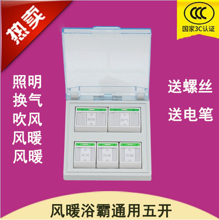 Bath switch 5 switch power button hair exchanges old style 86 type blue waterproof cap