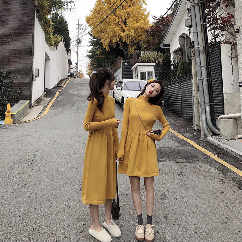 Large size women's clothing autumn and winter loose sweater suitable for hip thigh thick and thin ocean dress fat younger sister small sister dress