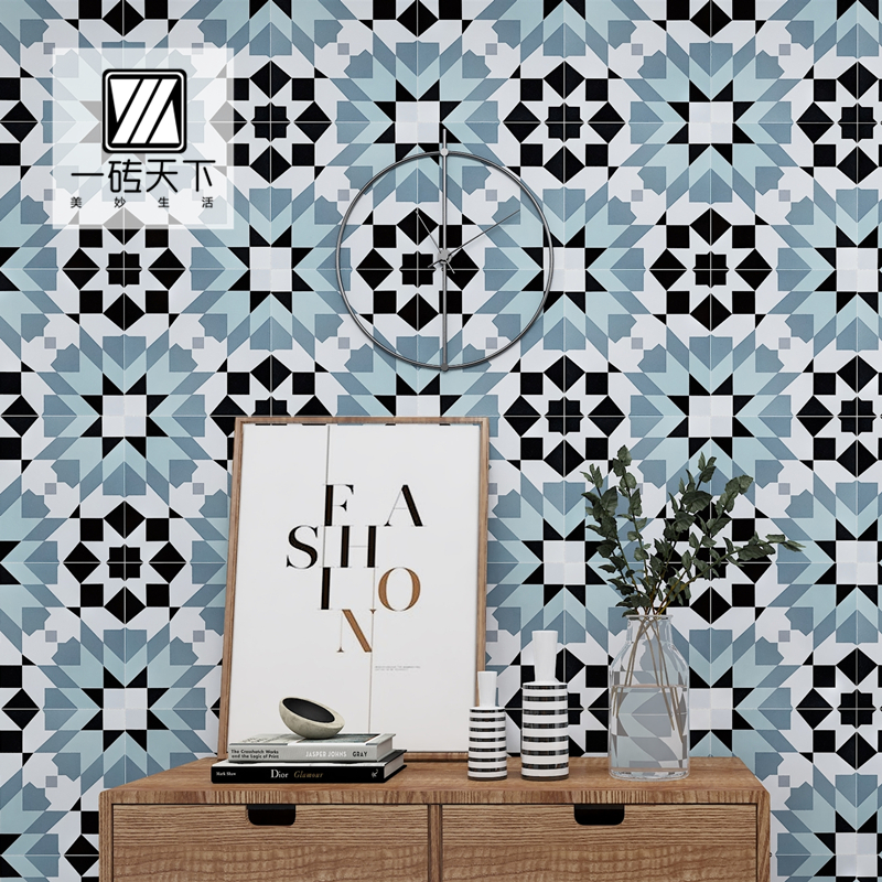 Nordic light luxury blue parquet tile bathroom wall brick floor tile Mediterranean restaurant kitchen bar anti-skid brick