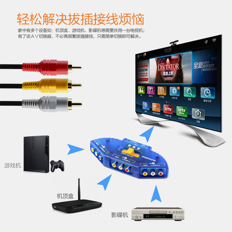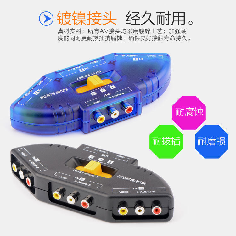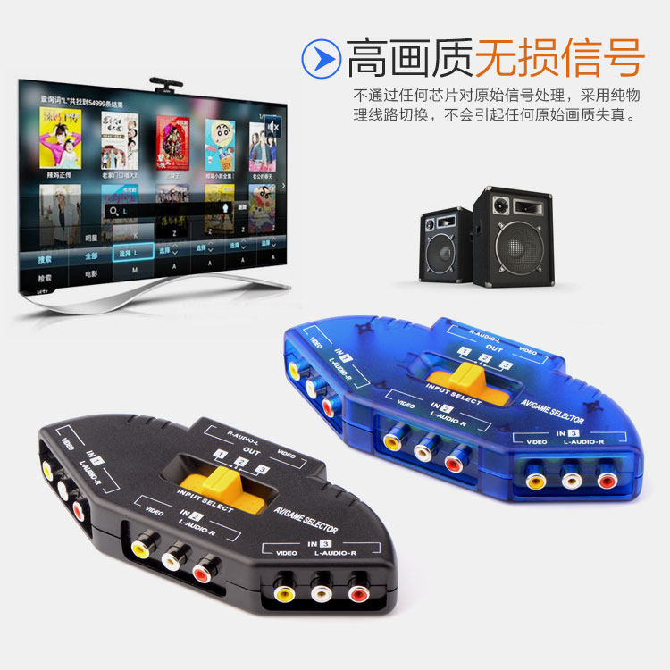 3 in 1 out AV switcher TV box signal red, white and yellow three-color line one-to-three audio video converter