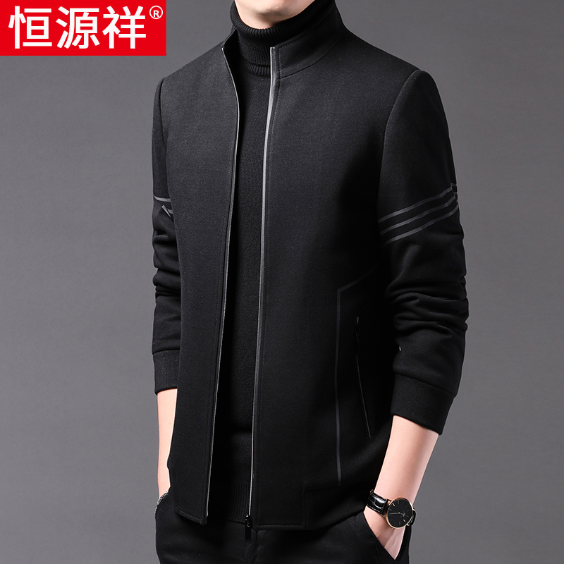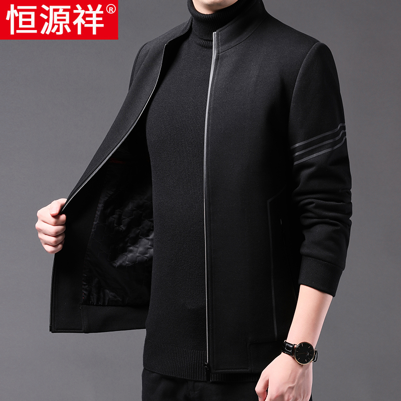 Hengyuanxiang autumn and winter woolen jacket men's short coat middle-aged men's casual stand collar dad trend top
