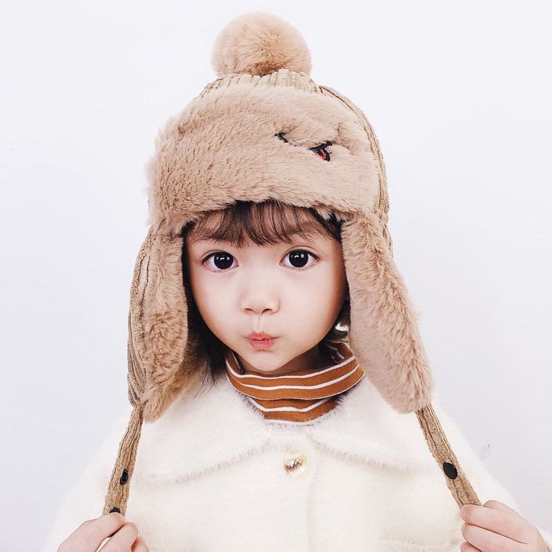 Children's hat winter 2-6 years old baby ear cap plus velvet thickened warm boy Lei Feng hat girl Korean version of tide