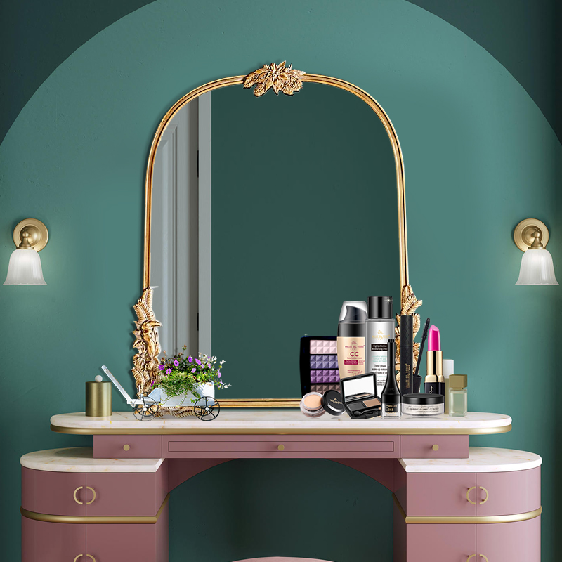 European-style carved retro decorative mirror bedroom dressing table makeup mirror living room dining side mirror wall hanging bathroom vanity mirror