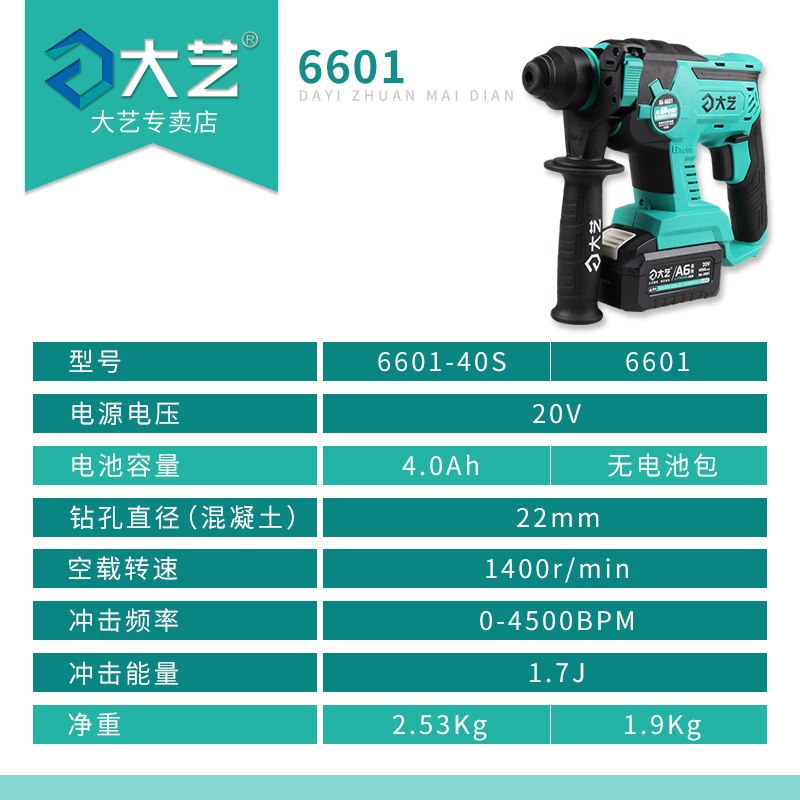 6601 electric hammer drill bare muscle (no battery without charger) 6601-40-1 electric one-charge mark 6601-40 two-electric-one-charge mark 6601-60-one-electric-one-charge mark
