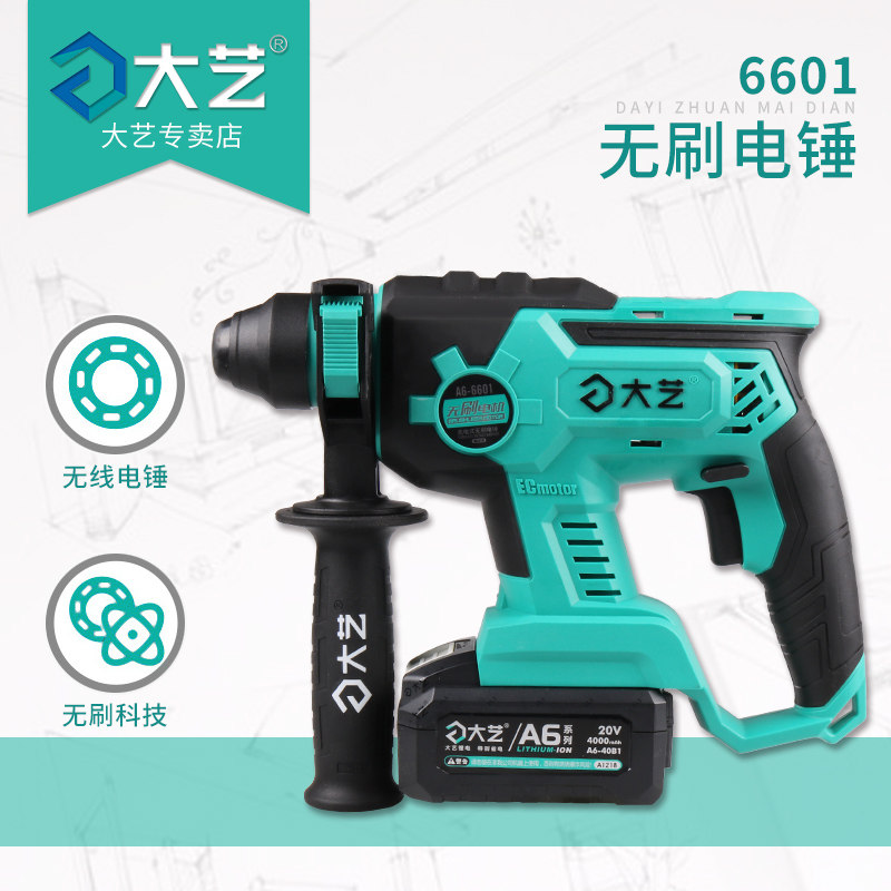 Large art charging lithium electric hammer drill Industrial stage electric hammer drill lithium electric brushless electric hammer drill rechargeable impact drill 6601