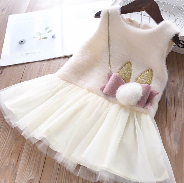 Pink hairy little bunny vest skirt beige fur Rabbit Vest Dress Pink Pre beige Scheduled pink Thousand Birds Gvest Dress Black and white Thousand Birds G Vest Dress