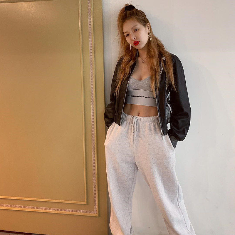 H home hyuna with the same beam feet solid color all-match sweater pants female ins hip-hop sports casual pants high waist drawstring loose