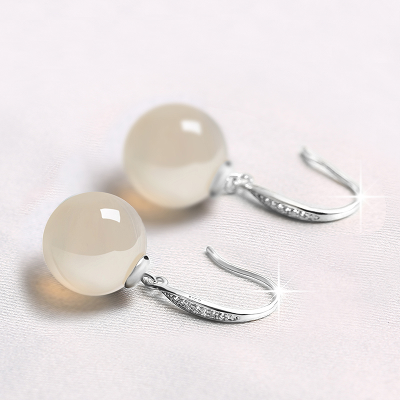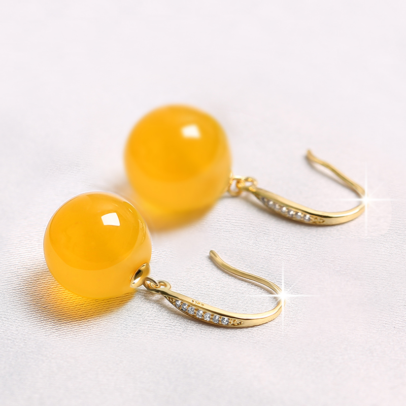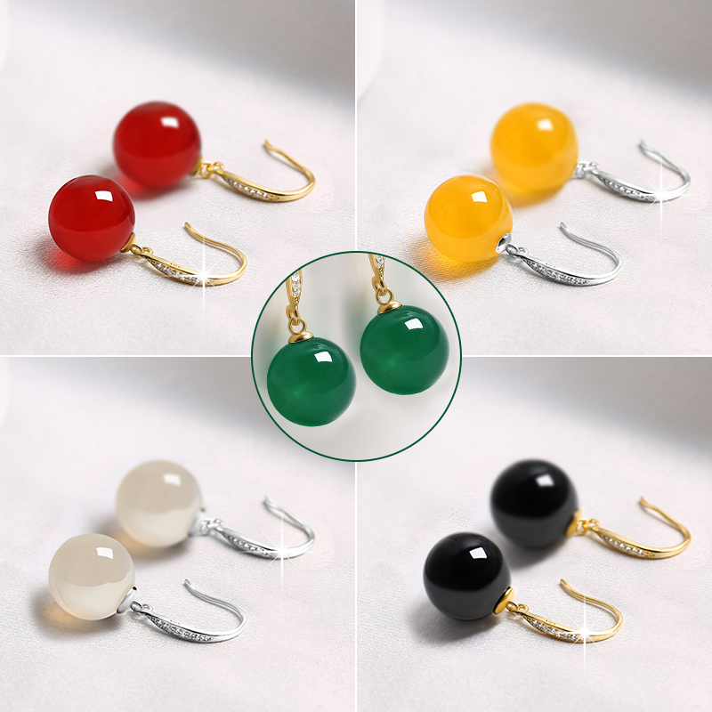 Temperament 10mm red agate 18K gold earrings 10mm red agate S925 silver earrings 10mm yellow agate 18K gold earrings 10m