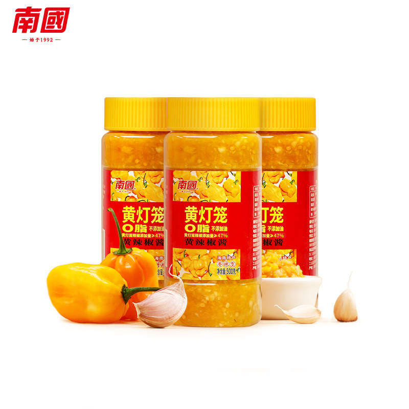 South China Hainan special production of yellow lantern chilli sauce 500gx3 chopped pretzels and garlic sauce with fresh and spicy sauce to mix with supine rice sauce