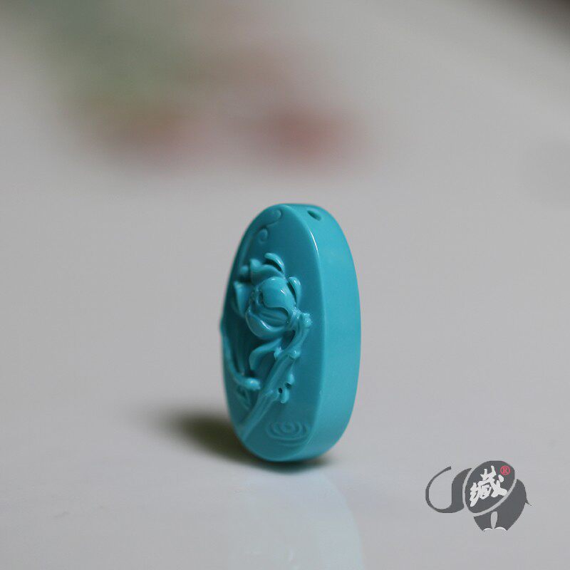 Original ore turquoise lotus pendant pendant Yungai Temple high porcelain blue pure jade chemical material Su Gong Rao Bin hand-carved pieces