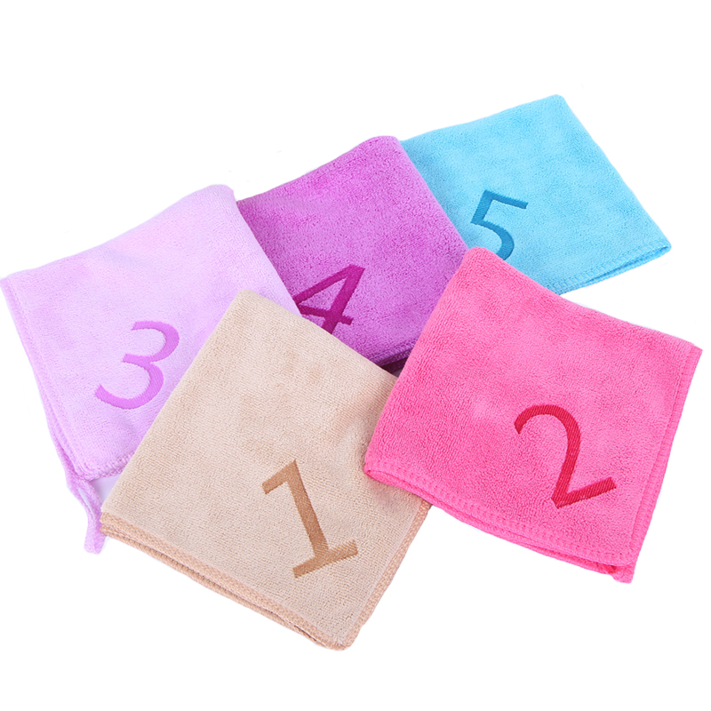 Soft hook with kindergarten towel number Absorbent face wash special name Children wipe hand embroidered baby number