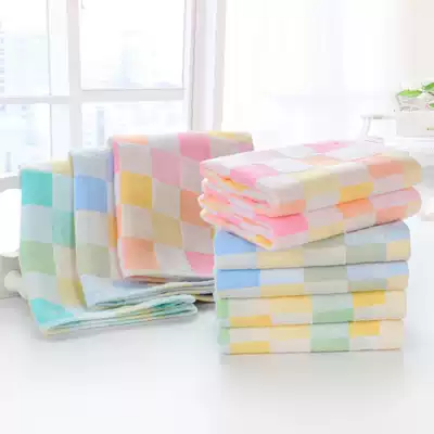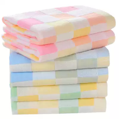 Baby full children's cotton face washing soft towel facial towel gauze towel small muzzle watercolor towel absorbent towel Cotton wool children's towel grid