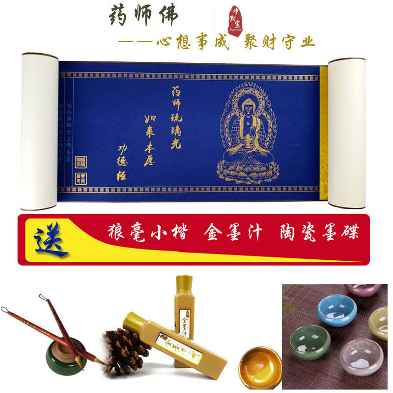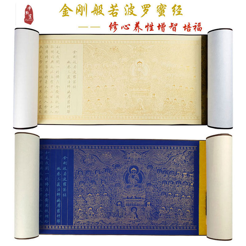 Hand-copied Buddhist Sutra Small Kai Brush Heart Sutra Copybook Handwritten text scroll 10m long volume King Kong Sutra Copy Pharmacist Sutra Copy Local Tibetan Sutra Beginner Introduction Text Shurangama Mantra Great Compassion Mantra Hand-rolled
