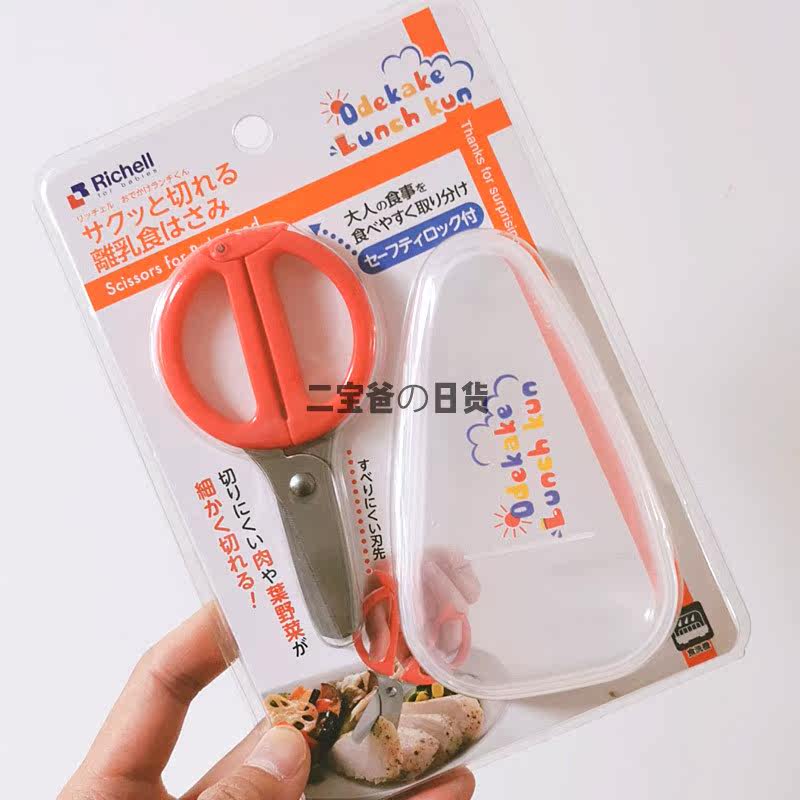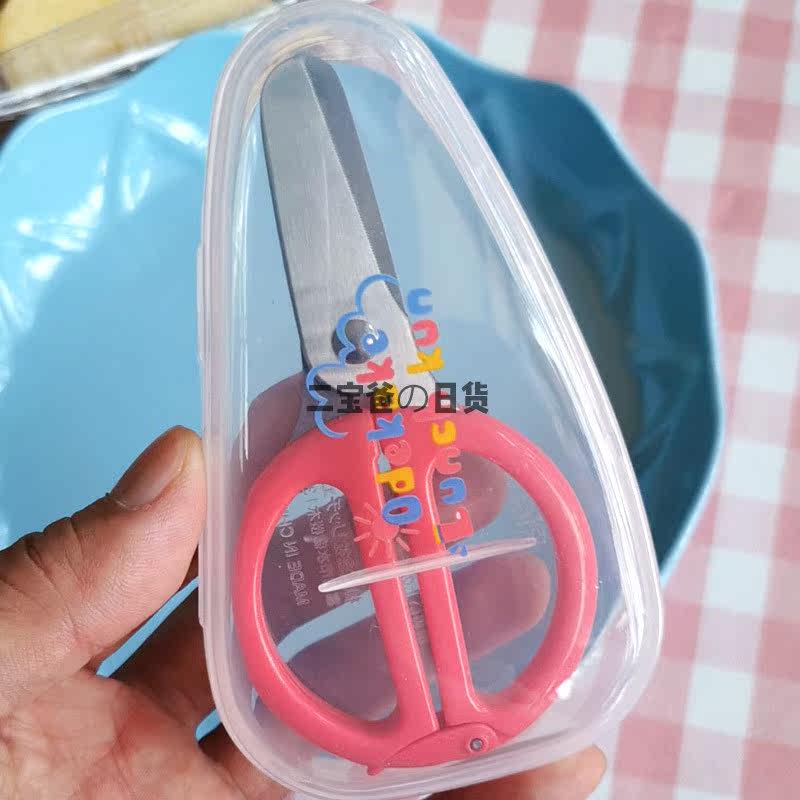 Japan Richell Lichel baby children stainless steel non-staple food scissors grinding scissors with storage box portable