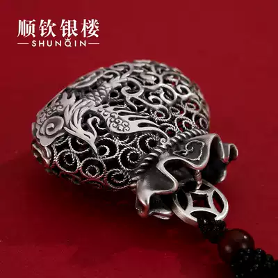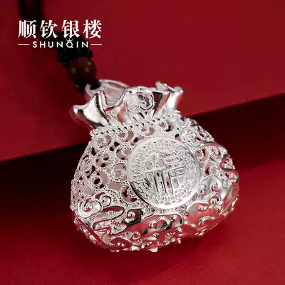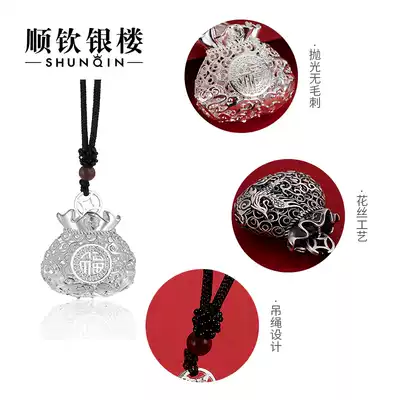 Shunqin silver building 999 foot silver silk blessing bag hollowed out lucky character Car pendant sterling silver jewelry silver pendant birthday gift
