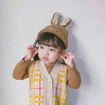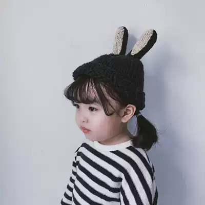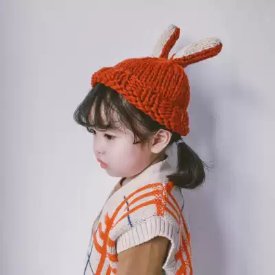 Korean men's and women's children's handmade color matching big ears children's wool hats Autumn and winter baby warm hats knitted hats