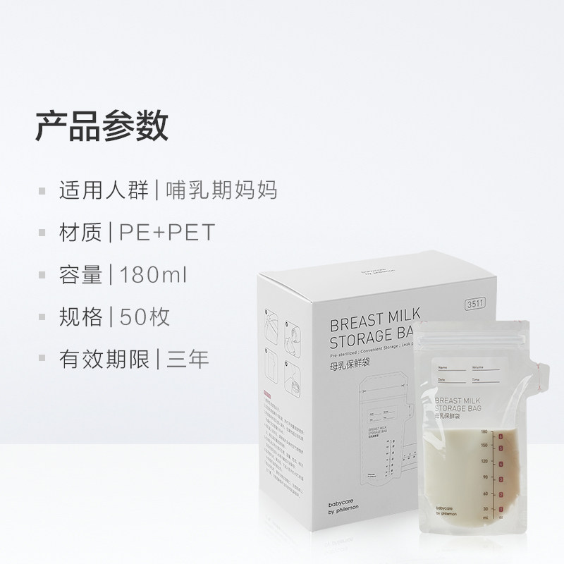 (2 pieces minimum) babycare milk storage bag breast milk preservation bag disposable milk storage bag 180ml*50 pieces