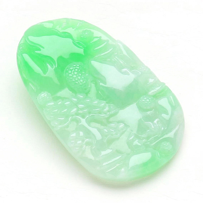 Natural Myanmar old pit A goods jade jade pendant full of green yang green beautiful river and mountain pendant carving money chain with certificate