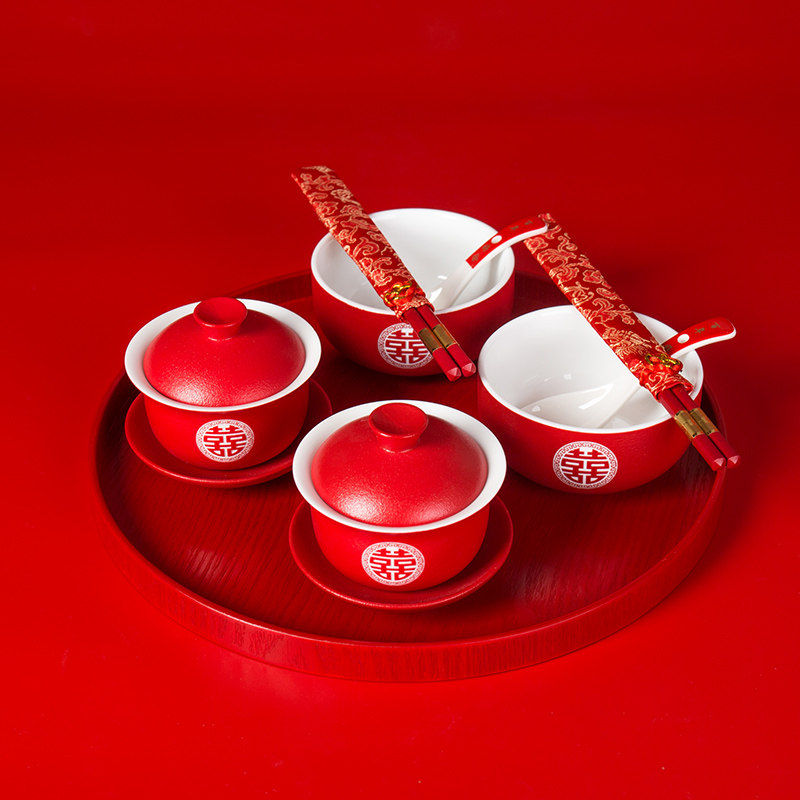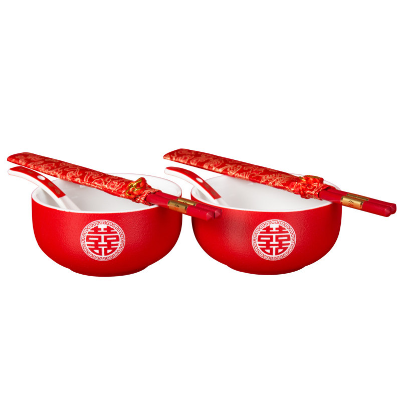 Wedding bowl chopsticks set dowry pair bowl ceramic red cup chopsticks wedding companion gift wedding supplies new gift