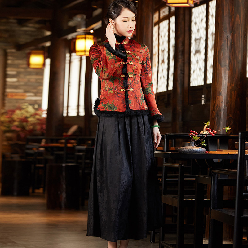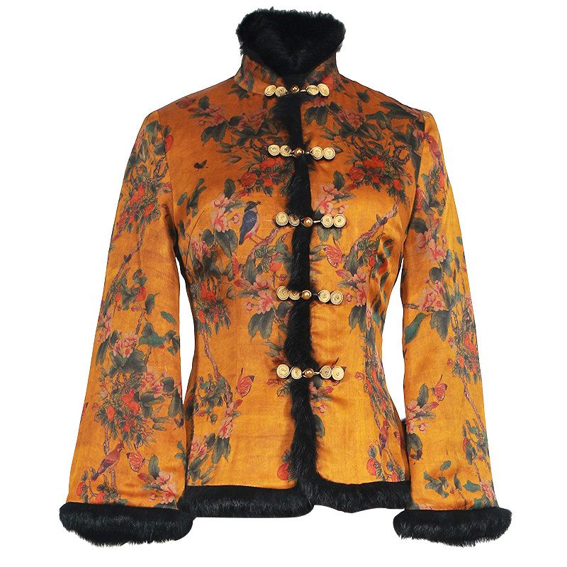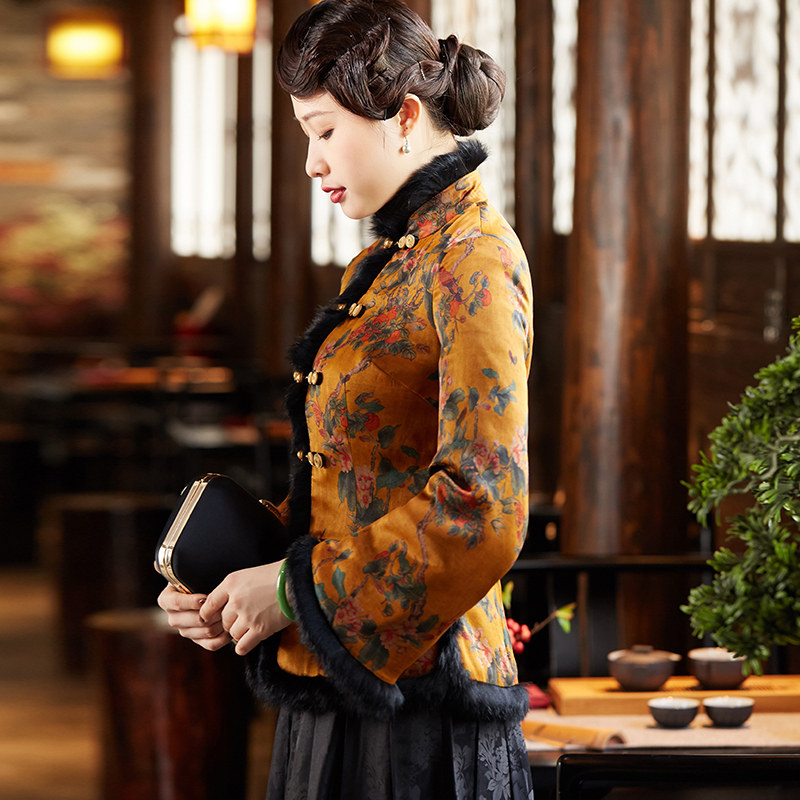 2022 Winter New Cotton Padded Jacket Retro China Wind Real Silk Short Style Mother Clip Cotton Qipao Don Dress Jacket Blouse Women