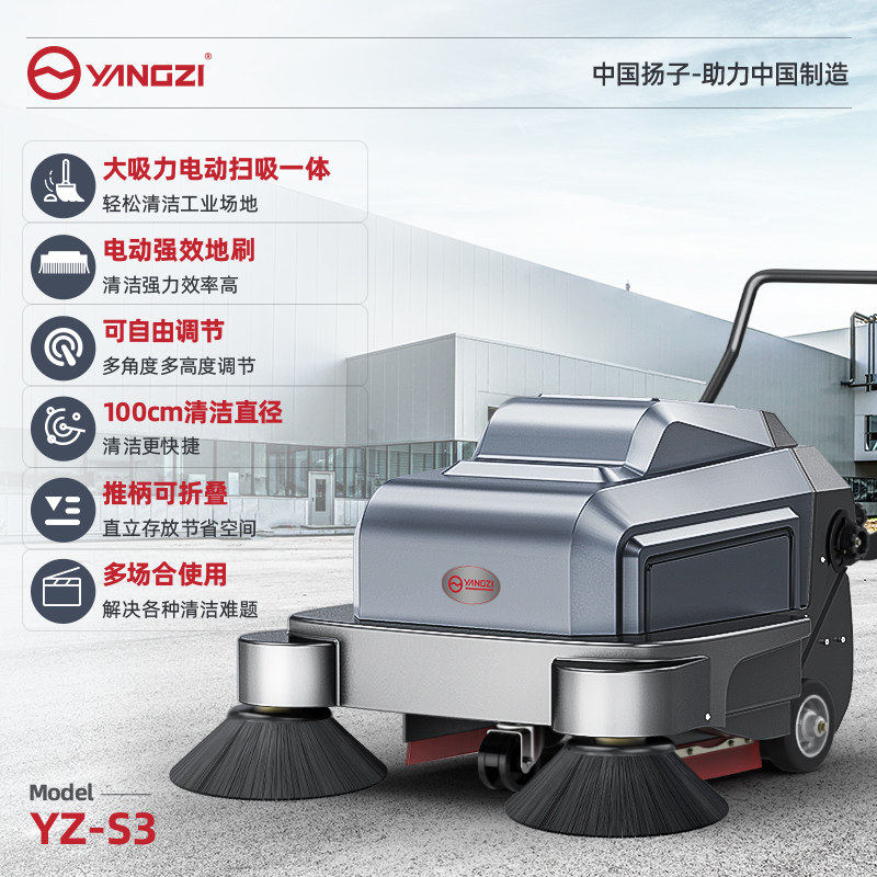 Yangzi S3 industrial sweeper hand-push factory warehouse workshop road commercial electric cleaning property sweeper