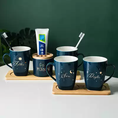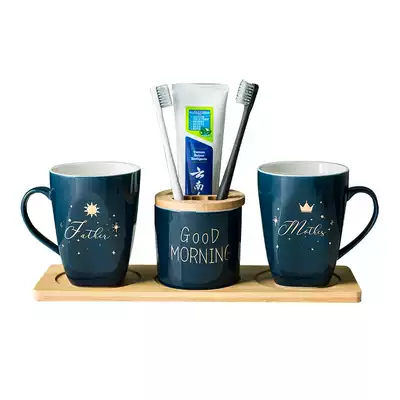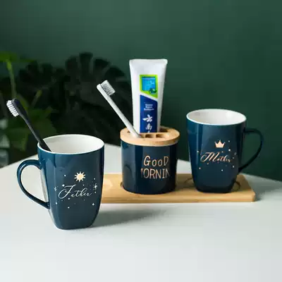 Creative wash cup set couple mouthwash Cup a family of three cute brush Cup cartoon ceramic toothbrush cup