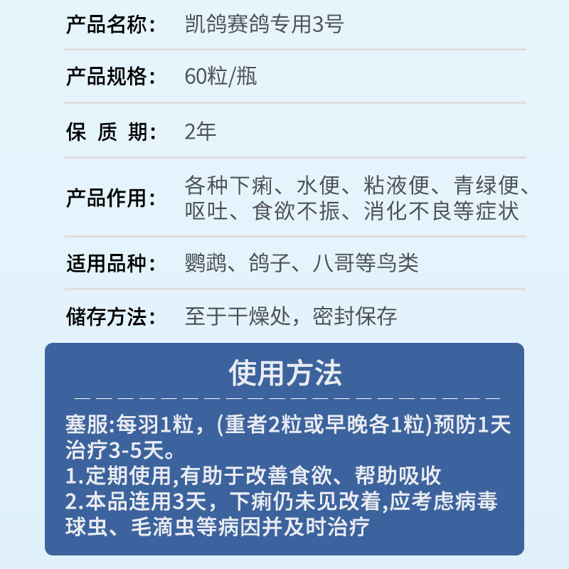 Kai pigeon pigeon medicine full set of Kai pigeon No. 3 intestinal Salmonella water stool green stool conditioning pigeon medicine complete set of common diseases