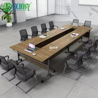 Mobile folding training table conference table long bar combination splicing flap desks and chairs double-layer training institution bar table