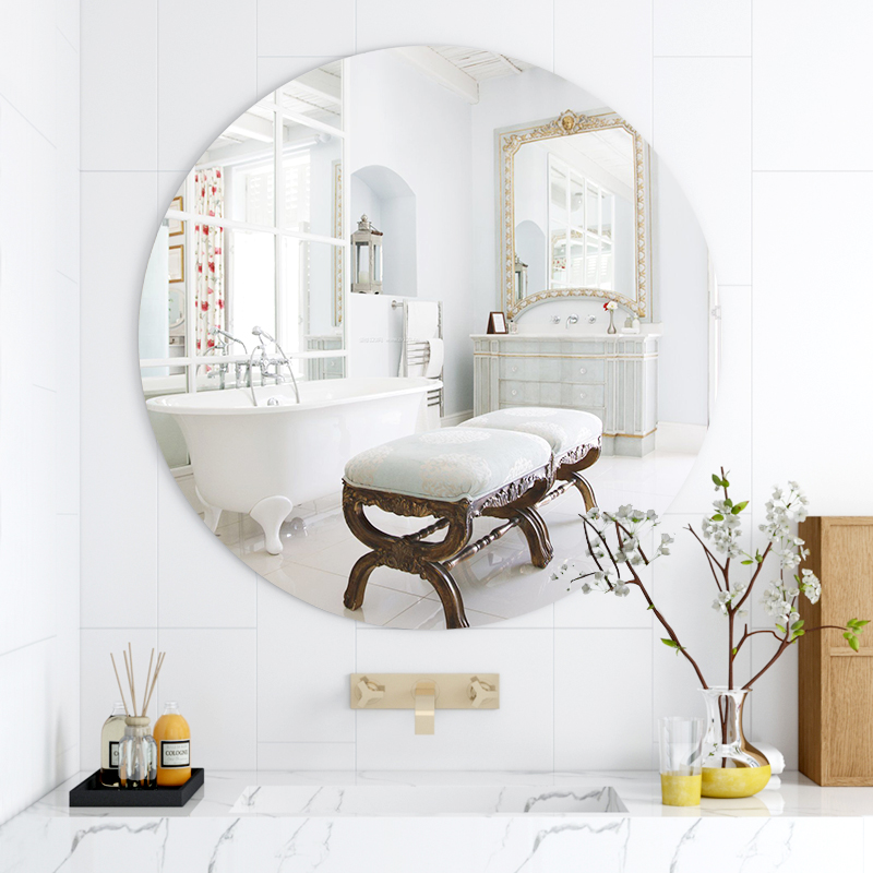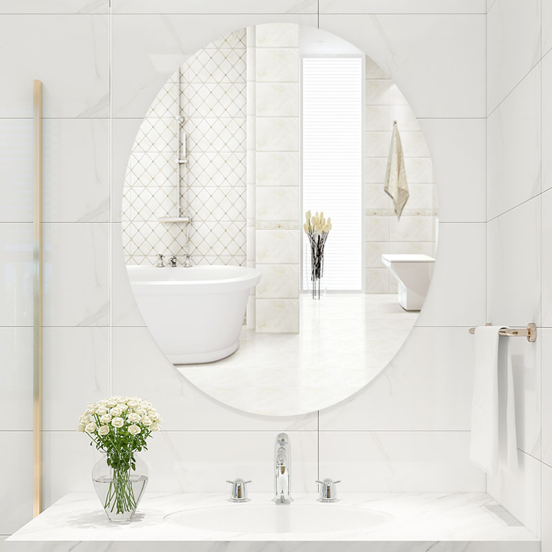 Bathroom round mirror wall mounted wall adhesive elliptical handtoilet hanging wall makeup and dresser bathroom glass mirror