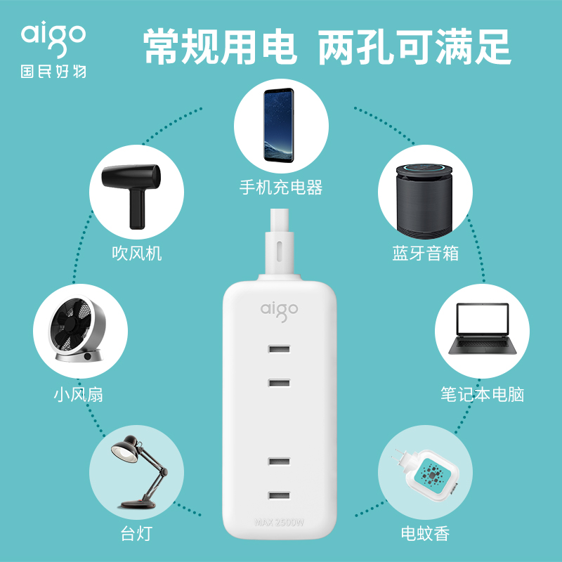 aigo Patriot socket two-pole mini multi-function plug row 2-hole USB plug row plug board plug board wiring board