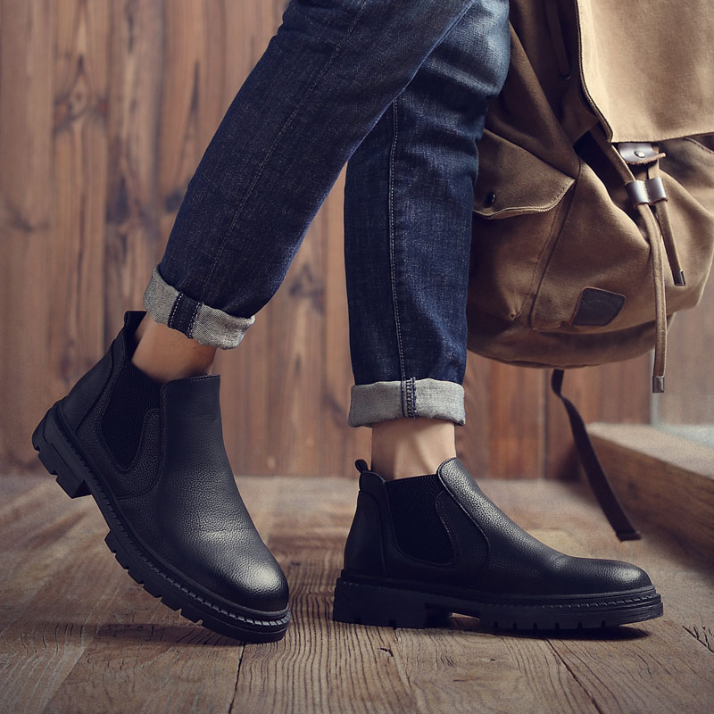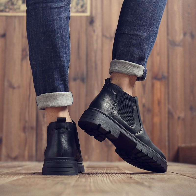 Summer Martin boots Men's Inn Wind Europe Europe and America Breathable Leather Boots Thick Bottom Black High Cylinder Shoes Mid-Cylinder Men's Chelsea Boots