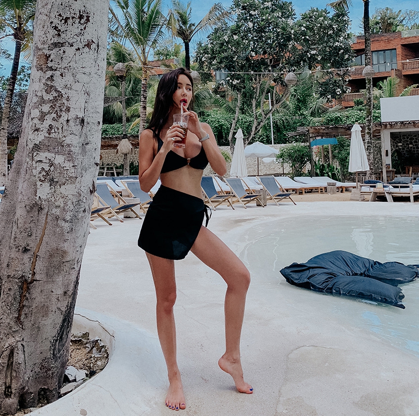 2022 new small fragrance two piece black sexy three - piece bikini Xinyin hot spring beach vacation suit woman