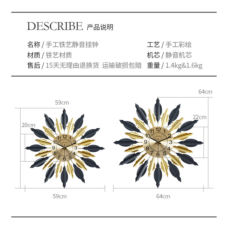 Modern Fashion Hanging Watch Mute Personality Art Decoration Watch Nordic Light Lavish Hanging Clock Living Room Home Creative Clock