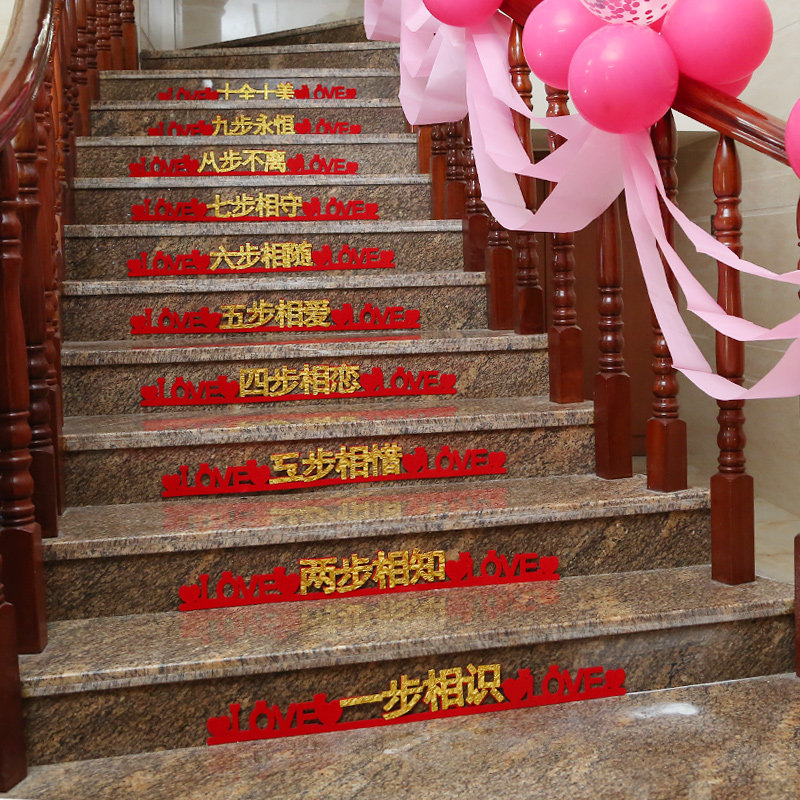 Stairs happy word stickers self-adhesive wedding supplies Wedding room decoration Non-woven steps stickers gold strip pull flowers for wedding