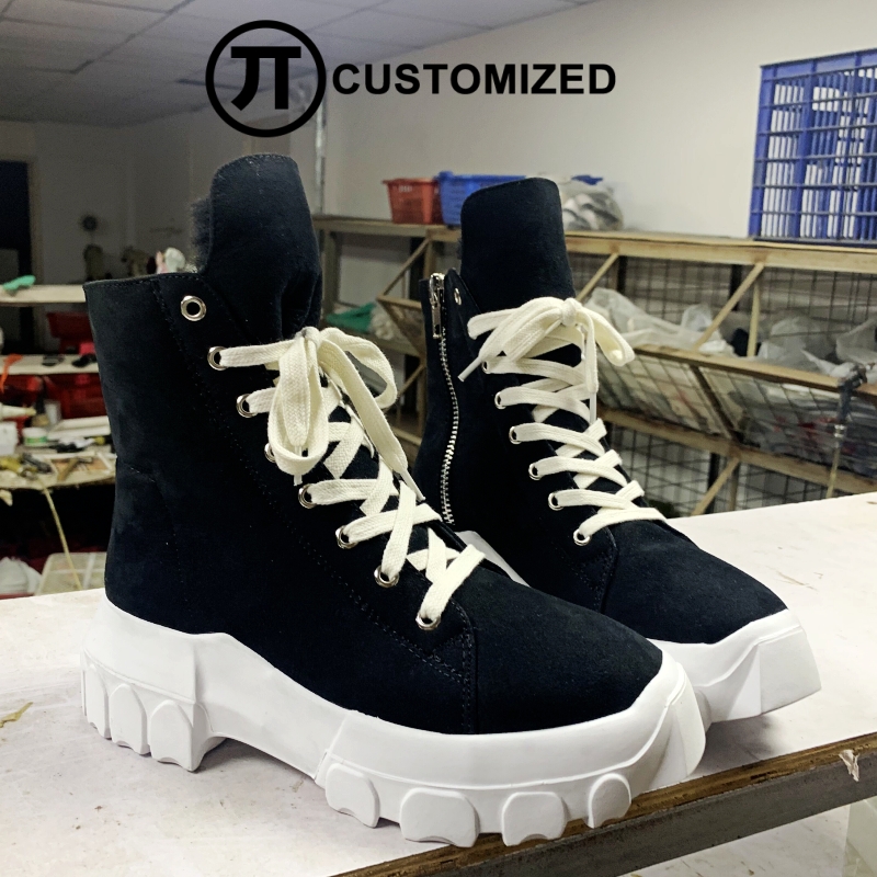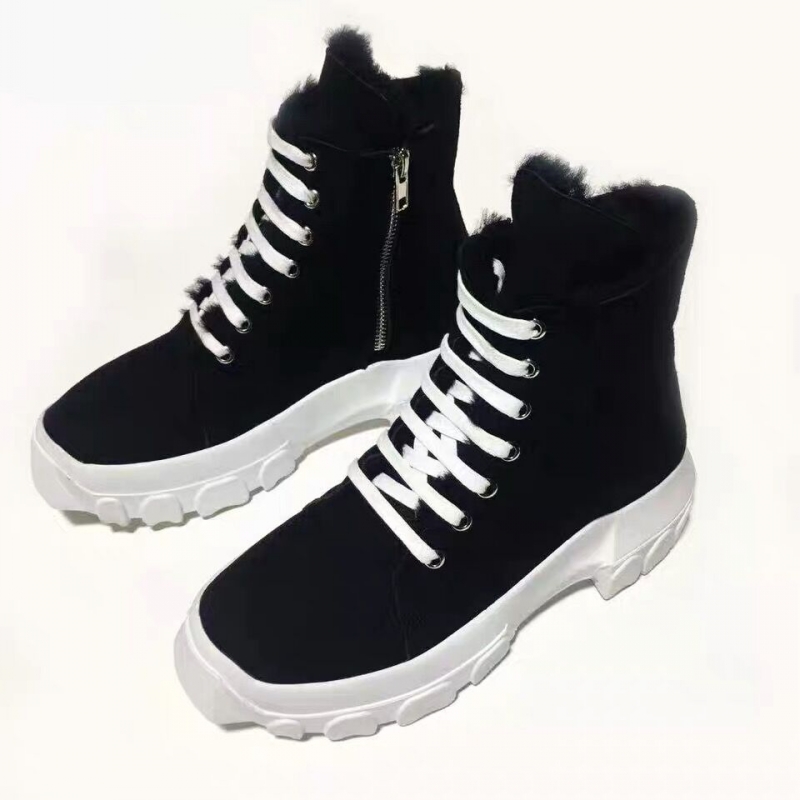 2021 RO Martin boots genuine leather muffin thick-soled heightened snow boots sheepskin fur integrated warm lace-up short boots for women