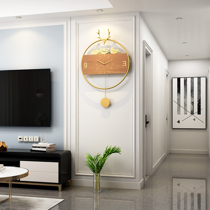 Nordic deer head wall clock living room home creative fashion personality light luxury art decoration simple modern silent clock