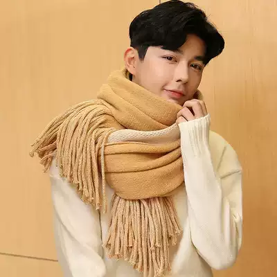 Scarf boys 2020 winter New Korean version Joker simple female students warm double-sided wool couple scarf