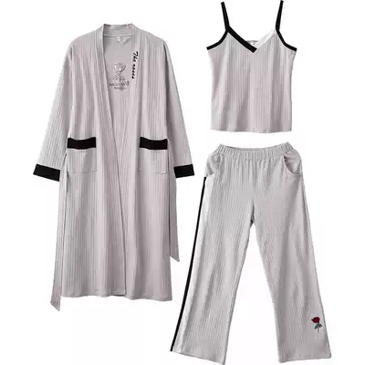 Three-piece pajamas women spring and autumn cotton suspender trousers simple sexy autumn and winter cotton thin robe set