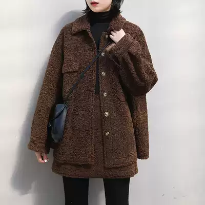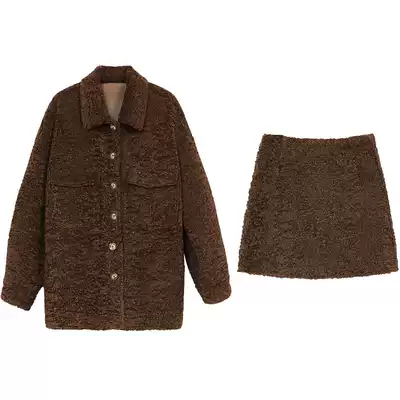 CHICVEN vintage imitation lamb wool suede one thick cotton jacket skirt set two-piece Winter Women