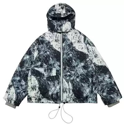 GRKC China snow mountain graffiti down jacket National tide brand hip-hop couple loose hip-hop men and women with the same fashion jacket