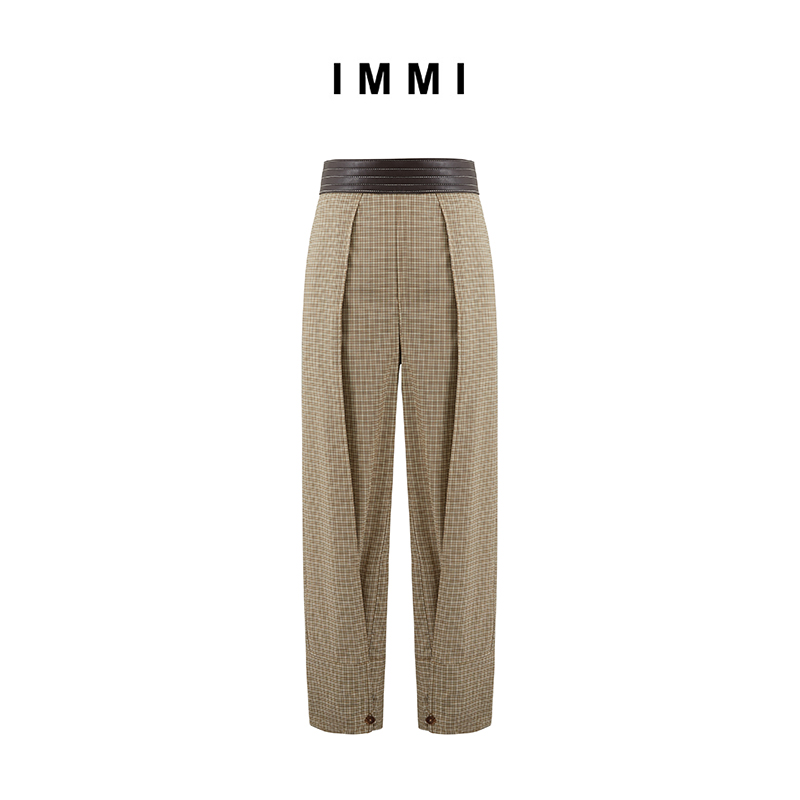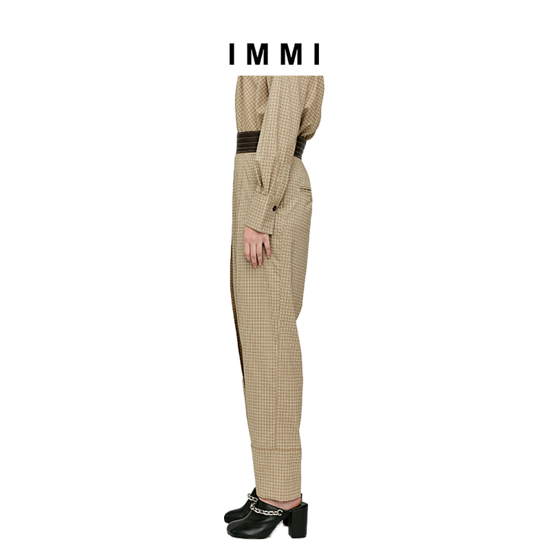 (Designer brand IMMI) SAVI same plaid worsted wool stitching tapered trousers 192PT030X